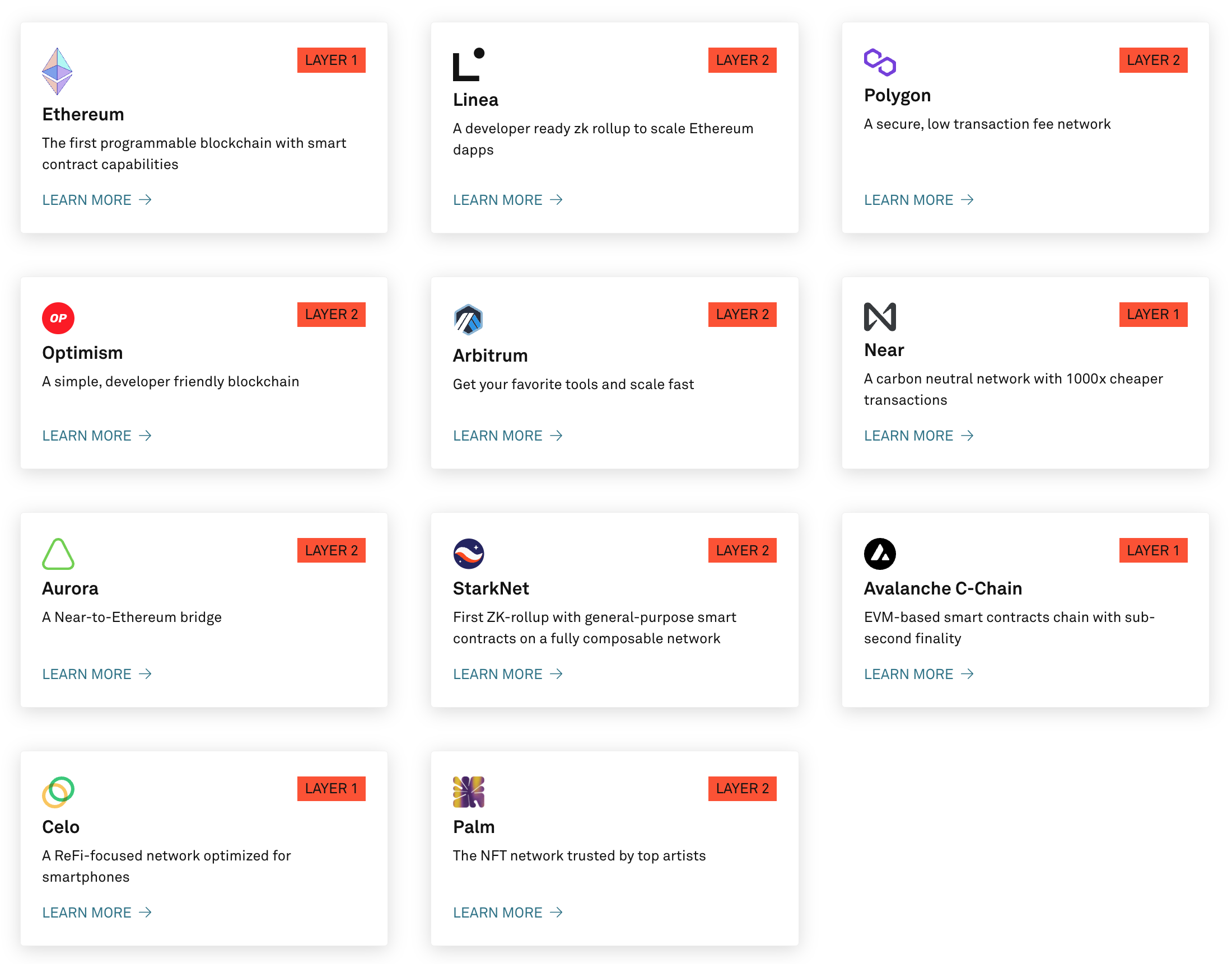 Infura는 이더리움뿐 아니라 아래와 같은 다양한 블록체인 네트워크를 지원합니다.